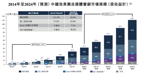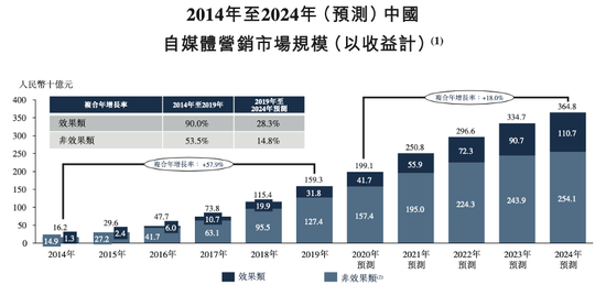尽管效果类营销按2019年收益计仅占自媒体营销市场的20.0%,但效果类营销具有高增长潜力,因为其一般是比非效果类营销更有效率和效果的营销工具,因此,预期日后效果类营销服务将占据更多市场份额。