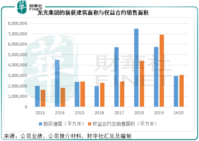 见下图,从2019年开始龙光集团的新获建筑面积落后于合约销售面积。