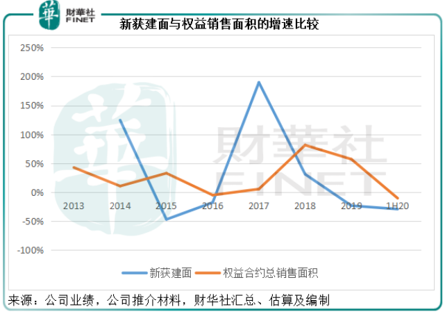 下图显示,从2018年起,该公司的拿地速度已落后于销售面积。