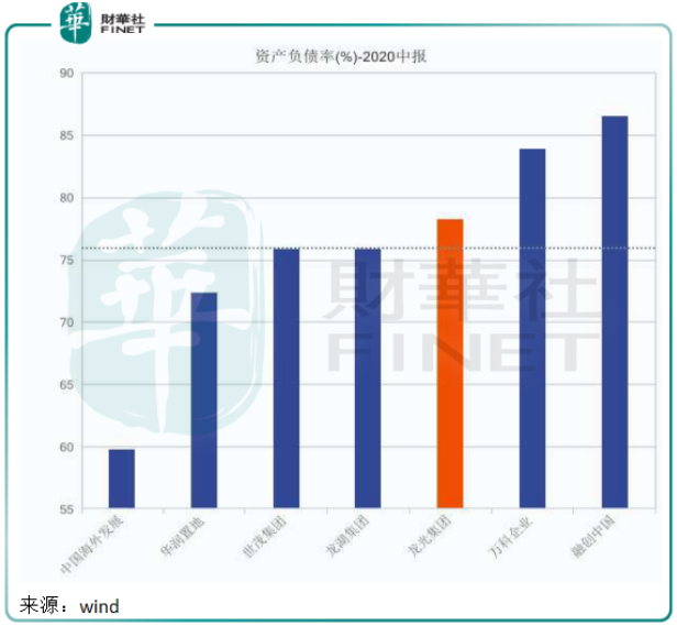 相对于规模更大的房企来说,龙光集团的资产负债状况尚可,见下图,至少资产负债率比万科(02202-HK, 000002-CN)、融创中国(01918-CN)等龙头老大稍微低一点。