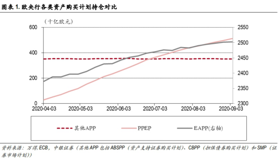 2.继续推进总量为1.35万亿欧元的PPEP(大流行资产购买紧急计划),截至9月4日,欧央行资产负债表上PPEP持仓为5123亿欧元,平均每周净头寸增加150亿欧元左右,是目前欧央行扩表的最主要来源;