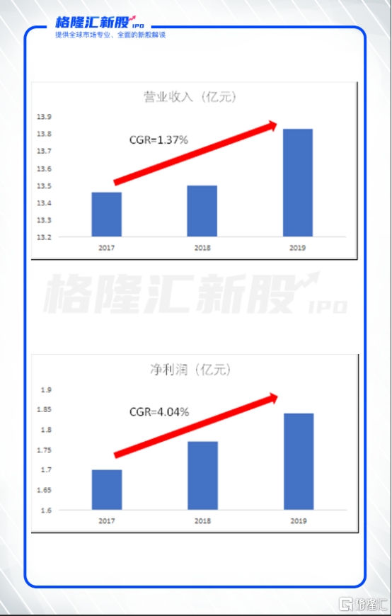 从财务方面来看,公司业绩增长出现了停滞。据招股书披露,公司于报告期内2017年-2019年营业收入分别为13.46亿元、13.50亿元、13.83亿元,后两年同比增速分别为0.29%、2.47%,增长几乎停滞。同期公司净利润分别为1.70亿元、1.77亿元、1.84亿元,后两年同比增速分别为4.03%、4.14%。对于一家消费品企业来说,考虑到通货膨胀因素,这样的业绩其实是在倒退。