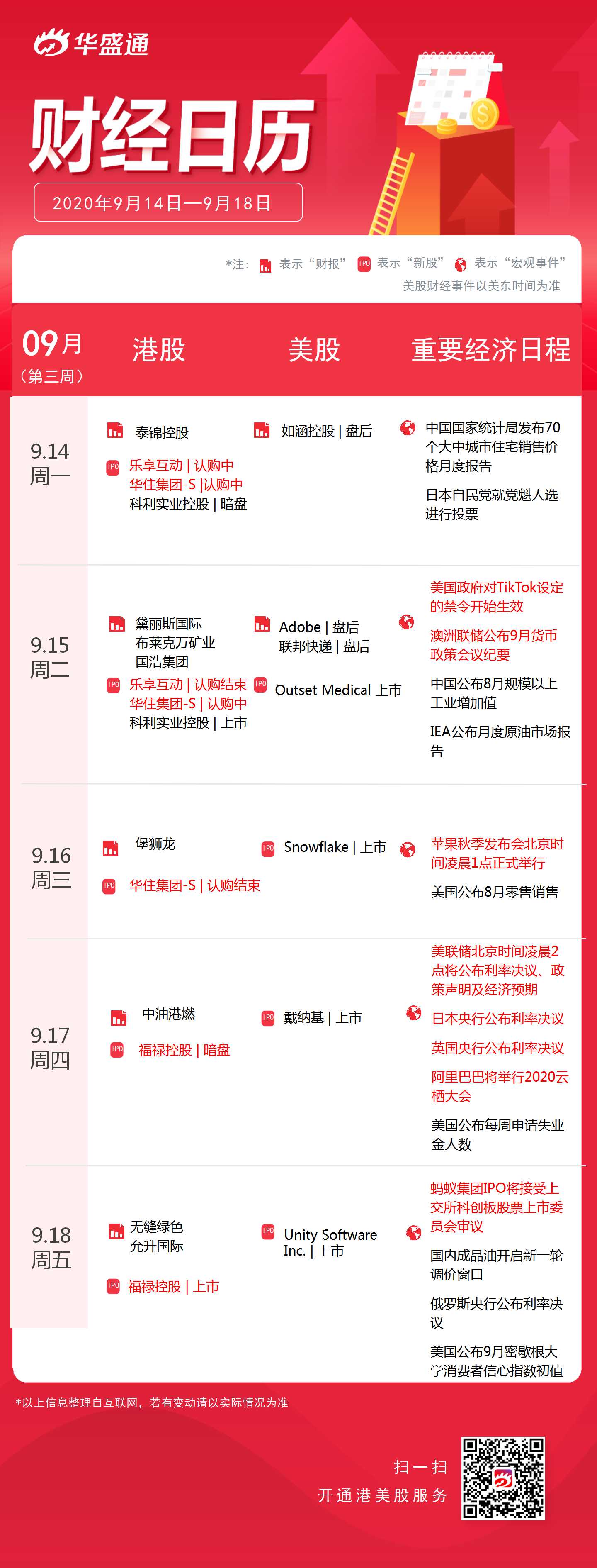 美股方面,股神巴菲特加持的Snowflake将在9月16日上市。