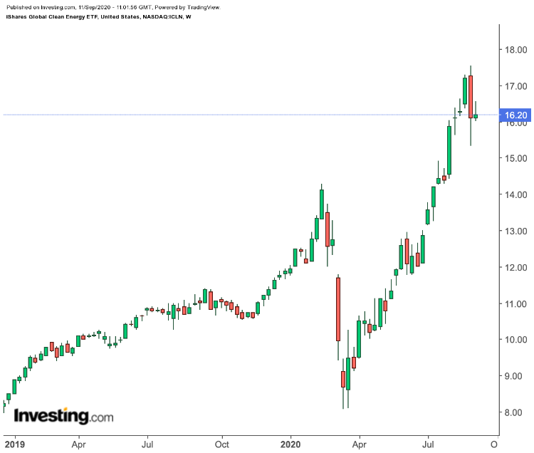 iShares Global Clean Energy ETF (NASDAQ:ICLN) $ICLN 为投资者在投资太阳能、风能以及其他可再生能源领域的全球企业投资敞口。