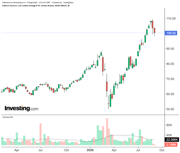 The VanEck Vectors Low Carbon Energy ETF (NYSE:SMOG) 为投资者提供了对全球可替代能源领域的公司的投资敞口。其中,包括主要来自生物质能、风能、太阳能、水能和地热资源等能源。