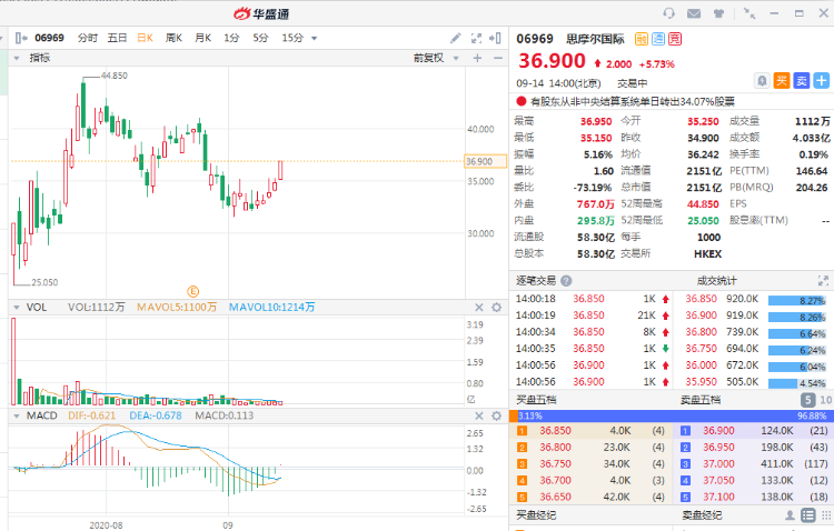 9月14日消息,思摩尔国际涨5.76%,现报36.9港元,最新市值2151亿港元。该股自9月7日最低收盘价以来,累计上涨逾11%。数据显示,该股在9月2日获南下资金净买入1.1亿,9月8日至11日分别净买入2306万、9613万、8587万港元,四个交易日累计净买入3.15亿港元。