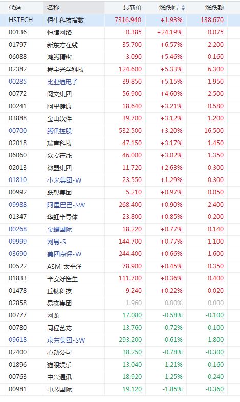 恒腾网络涨24.19%领涨指数成分股,上周公告称正在初步洽商一项潜在性收购交易,倘若落实潜在收购,可能构成本公司于香港联合交易所有限公司证券上市规则之14章交易。