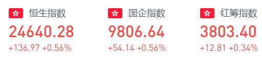 周一恒生指数涨0.56%,报24640.28点;国企指数涨0.56%,红筹指数涨0.34%。