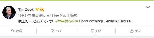 库克微博预热苹果发布会 网友集体追问:有iPhone 12吗?