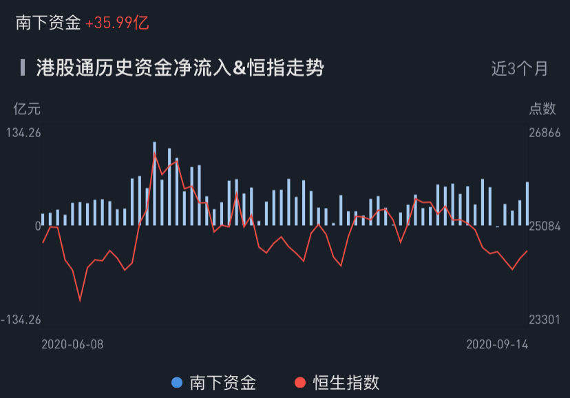 南下资金今日净流入港股51.52亿港元,较上一交易日略微下滑,但整体流入趋势不改。