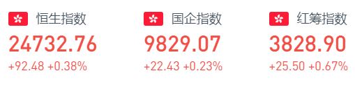 周二恒生指数涨0.38%,报24732.76点,国企指数涨0.23%,红筹指数涨0.67%。