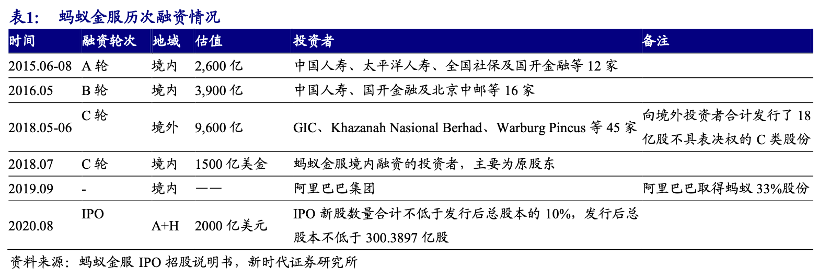目前,蚂蚁金服对外公布的主要融资有三轮。