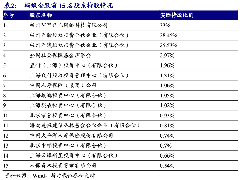 蚂蚁金服股权分布:阿里仍为第一大股东