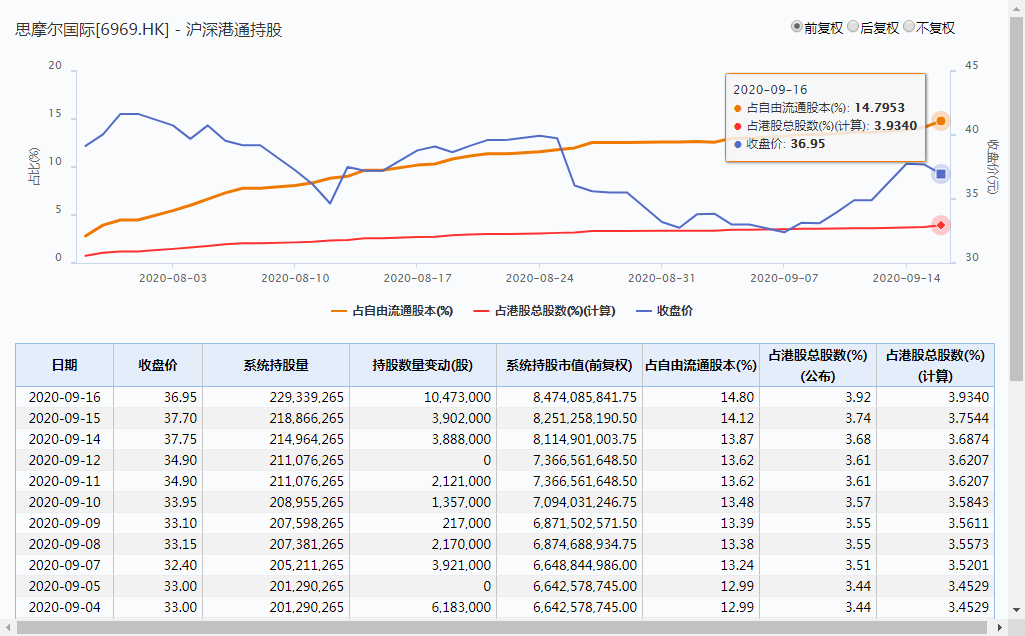 思摩尔国际一入港股通名单,就获得了南下资金的青睐有加。根据wind数据统计在7月29日,港股通持有思摩尔国际4356.9万股,占比自由流通股本的2.81%。