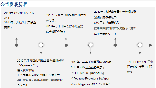 公司业务包括ODM及OBM两大业务板块,其中ODM业务主要为全球电子烟企业提供封闭式电子雾化设备及电子雾化组件,OBM业务主要为自有品牌开放式电子雾化设备及APV(高级进阶私人电子烟设备)。