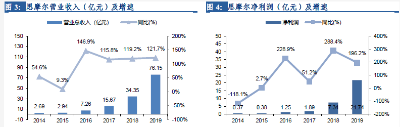 其业绩也从2016年开始实现惊人的高速增长,营业收入由2015年的2.94亿元增长至2019年的76.11亿元(4年增长了近25倍),2015-2019复合增速达125.6%;净利润由2015年的3800万元增长至2019年的21.74亿元(4年增长了56倍),2015-2019复合增速达175.0%。