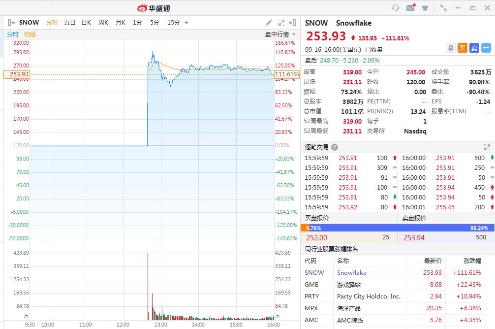 Snowflake(SNOW.US)上市首日暴涨超100% 巴菲特一夜豪赚8亿美元!