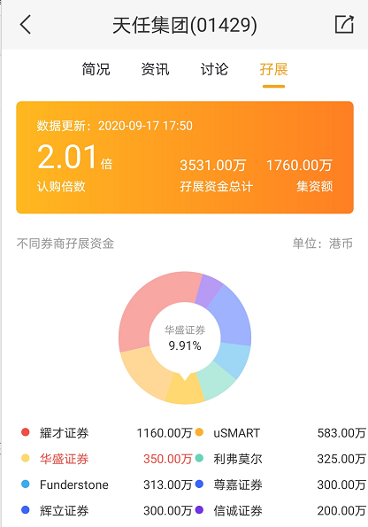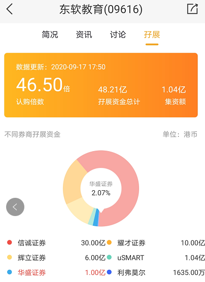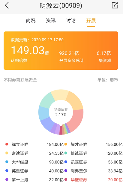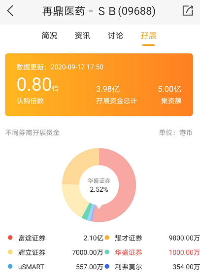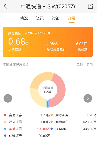 华盛资讯9月17日讯,当前有5只新股正在招股,包括明源云、东软教育、天任集团、中通快递-SW和再鼎医药-SB,其中明源云超购百倍以上;再鼎医药、中通快递招股首日认购未足额。详细新股孖展情况如下: