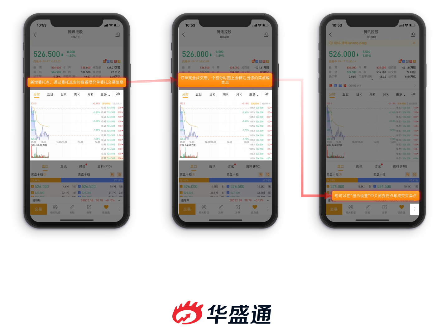 1.【行情】分时图新增委托、成交买卖点,实时掌握交易动态;