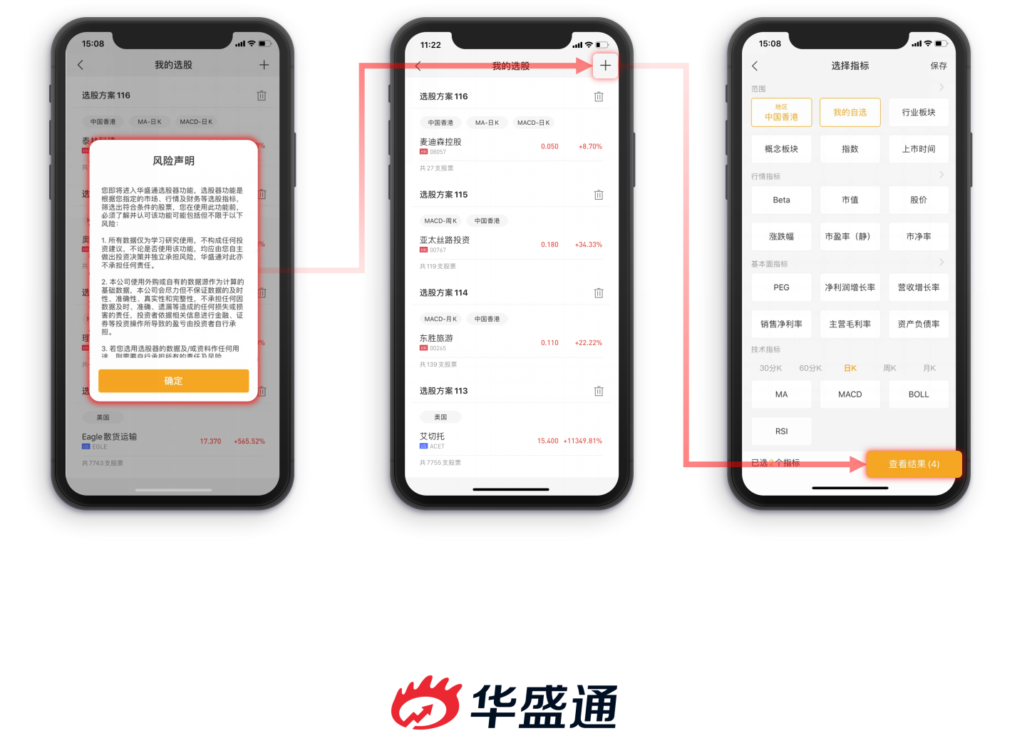 选股器是您筛选股票的好帮手,在【华盛通2.3.1】新版中选股器新增了【我的自选】选项 ,现在您可以通过选股器筛选您的自选股。