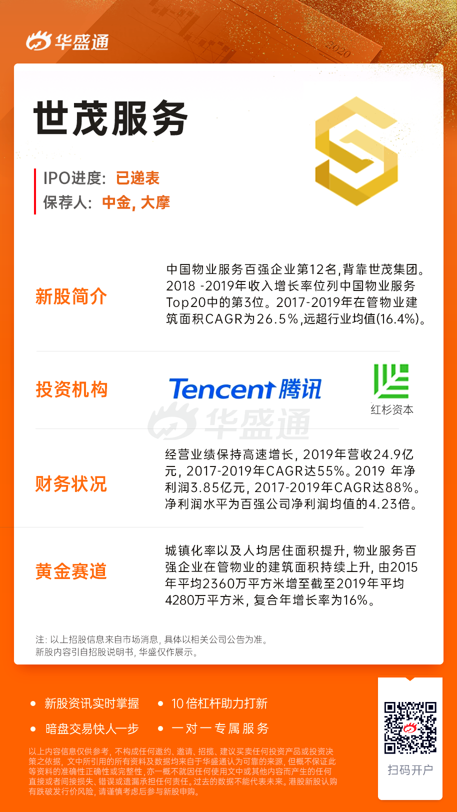 世茂集团(00813.HK)旗下物业管理公司世茂服务在今年6月向港交所递表,中金公司及摩根士丹利为联席保荐人。