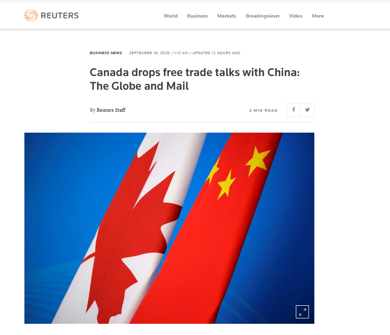 原标题:加媒:加拿大已放弃4年前启动的中加自由贸易协议谈判