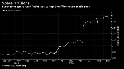 欧洲央行将于下周向市场注入超低利率的流动性,这可能会使欧元区的剩余现金首次超过3万亿欧元(3.6万亿美元)。