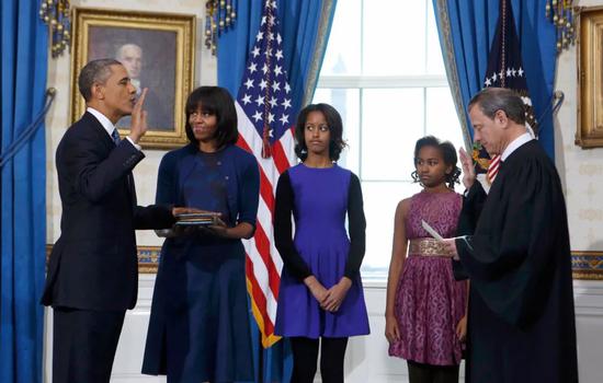 2013年1月20日,时任美国最高法院首席法官的约翰·罗伯茨主持了奥巴马总统连任就职程序