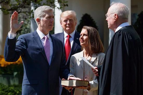 特朗普在2017年上台后,兑现竞选承诺,圈定并提名了若干偏保守的大法官。