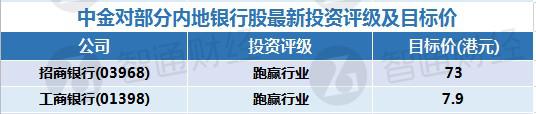一、中金对部分内地银行股最新投资评级及目标价