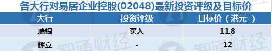 三、各大行对易居企业控股(02048)最新投资评级及目标价