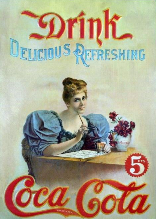 可口可乐实际上是源自一种药剂配方,在最开始,可口可乐广告着重强调的是滋补功能,在19世纪末,糖在美国还是稀缺品,在绝大多数人摄入糖分不足的情况下,糖浆汽水自然就成了滋补品。咖啡因带来的提神和二氧化碳带来的解渴功效,三位一体,让可口可乐逐渐成为美国的国民日常饮品。