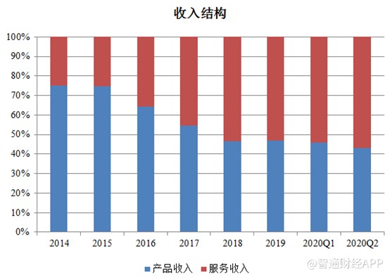 智通财经观察到,2016年后公司的非经销模式GMV构成比例明显增加,2018年之后达到了90%左右,服务模式的收入占比不断提升,2018年首次超过产品收入,这使得公司的毛利率持续增长,从2015年的33%增至2018年的62%。