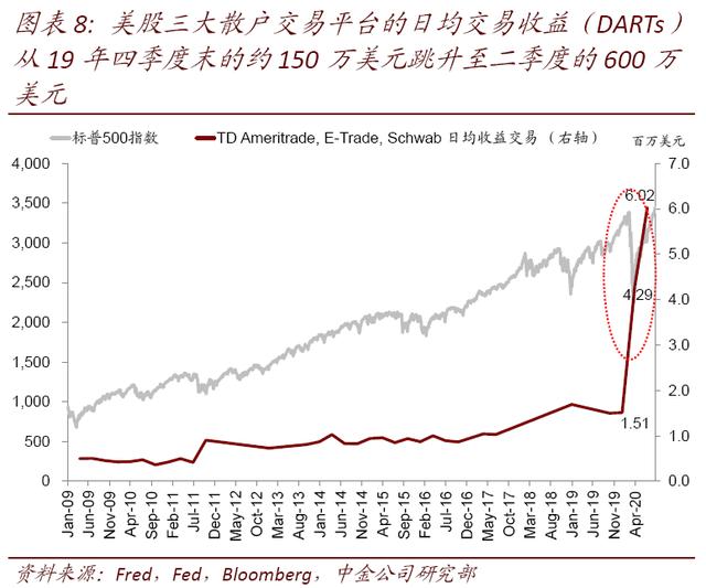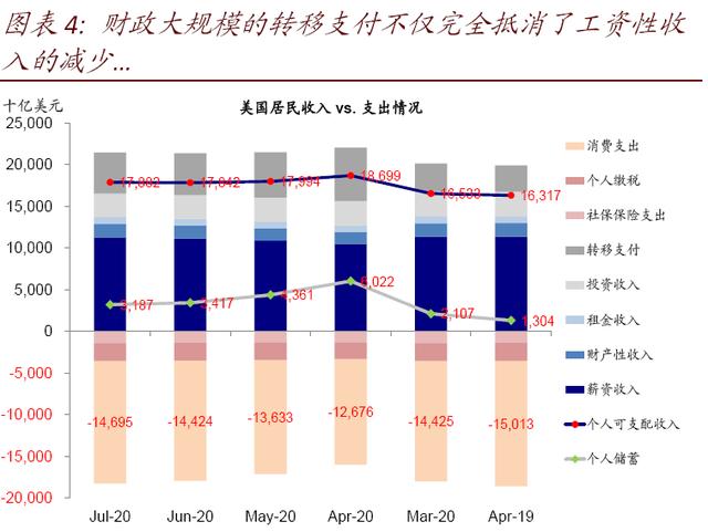 这一担心也并非没有可能,尽管美股是以机构为主导的市场,我们估算的居民直接持股约为31%(《解析美股投资者结构与居民资产负债表》);不过,疫情以来,为了应对疫情对经济、就业和居民收入的巨大冲击,政府通过直接补贴、薪资保护计划以及失业救助等方式的转移支付不仅完全抵消了居民部门因失业造成的工资性收入的损失、反而使得可支配收入大幅增多,截至7月份的居民储蓄率仍高达17.8%;叠加在此期间大部分居民均隔离在家,因此有一部分钱流入股市也并非没有可能。