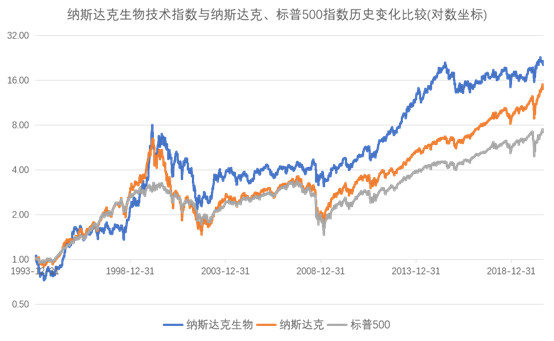 很多人觉得美股是历史高位,很担心。其实两者在有很大的不同。我们回过头去看下08年美股大崩盘的时候,发现NBI其实也没怎么崩。01-02年纳斯达克泡沫破灭了之后,纳斯达克整体指数是跌回96年之前的水平的,但是NBI依然比起涨前要高很多,也就是说这个行业天然有一定的抵抗性。它有很强的无中生有的能力,势能就算再差,动能也够强也有相当程度的抵抗性。就单个标的来说,它们都是独立于指数和美股市场的。