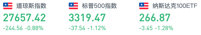上周,美股整体在震荡走势中下跌。截止收盘,标普500指数一周累计下跌0.64%,报3319.47点;道琼斯指数一周累计累计微跌0.03%,收报27657.42点;纳斯达克综合指数一周累计下跌0.56%,报10793.28点。