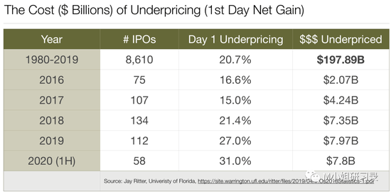 (IPO当日收盘价 – IPO定价)x 机构投资人购买数量就是企业因为underprice在IPO过程中少募集的钱