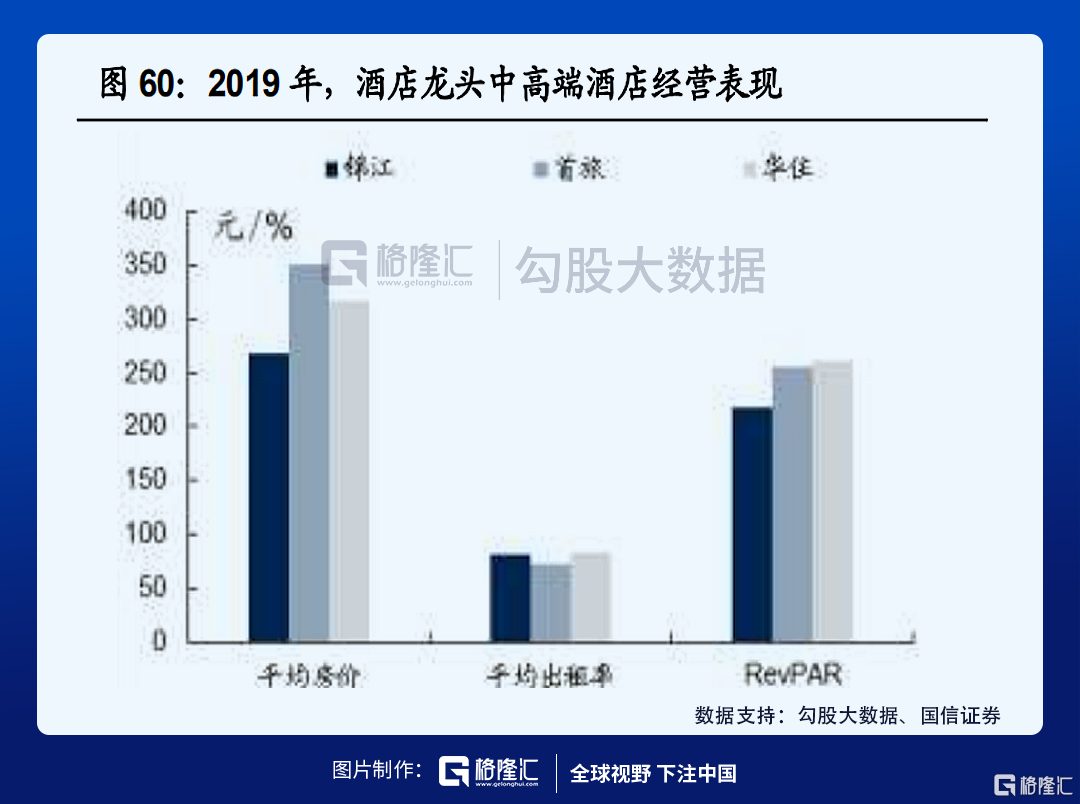 从经营数据上来看,由于华住集团在中高端酒店上的布局相对较早,率先布局一二线城市,抢滩质量较好的物业,因此无论在出租率上还是RevPAR上的表现优于其他竞争对手。