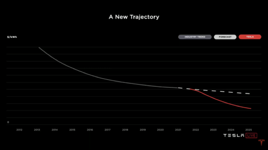 如果特斯拉不加入到电池生产的游戏中去,电池成本的下降曲线将会非常缓慢。