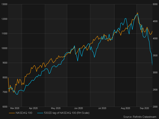 Mott Capital创始人及投资组合经理Michael Kramer的图表显示,当前纳斯达克100指数的走势与1999年底网络泡沫时期高度相似。从今年3月份新冠疫情引发的低点开始,纳斯达克100指数在163天内跳升了84%。而该指数在从1999年11月到达顶峰的151天中上涨了约86%。