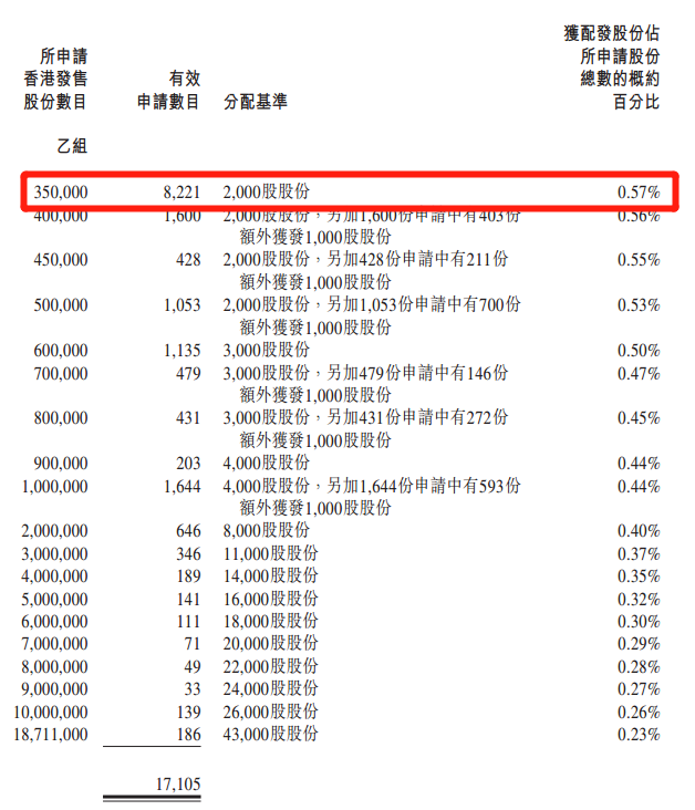 公司公开发售获644.25倍认购。1.01亿股发售股份已从国际发售重新分配至公开发售。公开发售最终数目已增至1.38亿股,相当于任何超额配股权获行使前发售股份总数的约37%。
