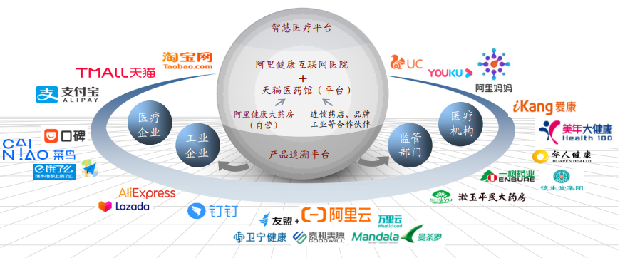 与京东类似,阿里健康的商业模式也是以医药电商为主,是阿里巴巴集团“Double H”战略(Health and Happiness健康与快乐)在大健康领域的旗舰平台,是阿里巴巴集团投资控股的公司之一。