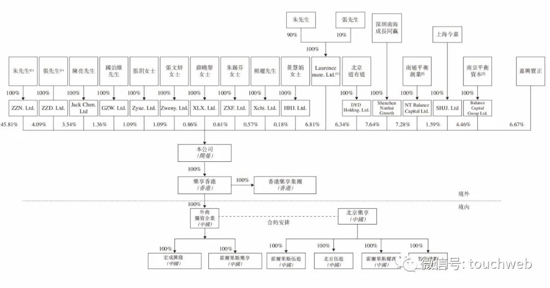 IPO前,朱子南直接持股为45.81%,張之的持股为4.09%。朱子南和張之的通过Laurence还持有6.81%股权。