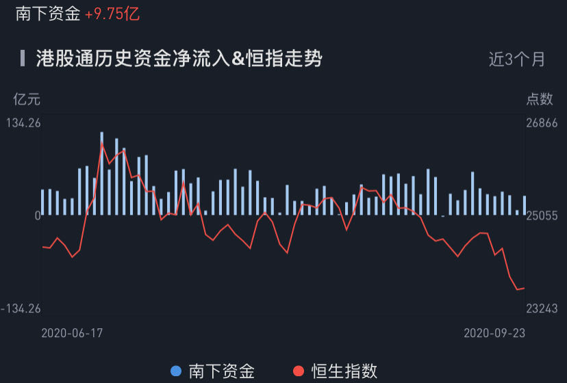 南下资金今日净流入港股9.75亿港元,流入规模较上一交易日有所下滑。