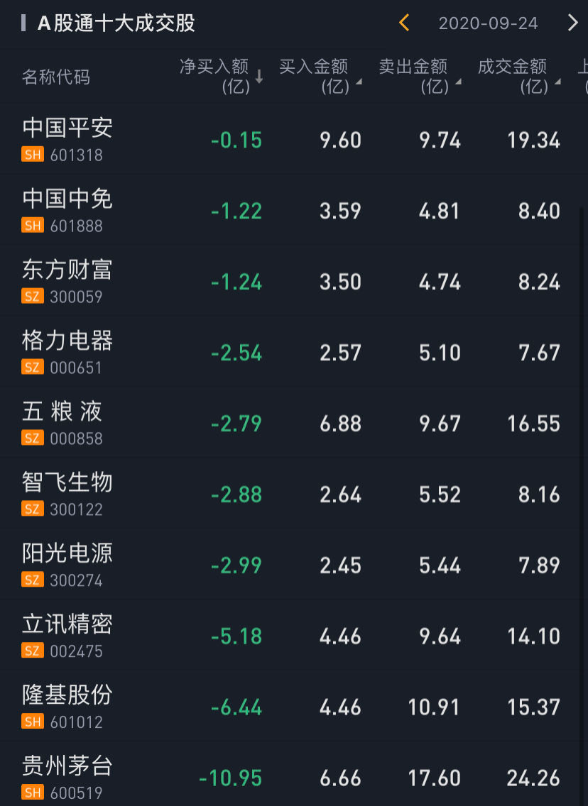 北上资金今日净卖出贵州茅台10.95亿元,净卖出隆基股份6.44亿元,净卖出立讯精密5.18亿元,净卖出阳光电源2.99亿元。