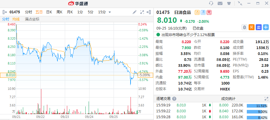 截至2020年6月30日止之半年度业绩为营业额17.35亿元,增长15.9%。股东应占盈利同上升34.3%至1.78亿元。期内整体毛利率轻微增加1.6个百分点至33.9%。主要产品可分为即食面和冷冻食品。即食面可分为不同种类的包装,包括即食杯面、碗面、袋装即食面,及预先煮好的干面饼。通常在滚水中煮三至五分钟即可食用。在香港最𣈱销的品牌包括出前一丁、合味道、公仔面及福。另有部份产品,包括米粉、乌冬、拉面和通心粉。而在内地市场的重点品牌为合味道、公仔面、飞碟炒面及日清拉面。冷冻食品主要为旗舰品牌公仔点心,包括冷冻点心、意式面食、冷冻面条、叮叮饭及急冻膳食。另有部份零食,包括甜品、咖喱食品和蒸煮袋装产品。零食则包括薯片及谷物类食物。产品主要以批发方式销售给大型超市、便利店及大卖场等。同时亦直接向客户销售,包括航空公司、酒店及餐厅。