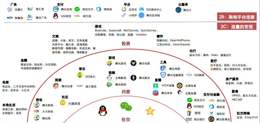 这家最初以QQ起家,专注社交互动的PC互联网公司,如今已经发展成了一家涵盖端游加手游、金融科技、媒体娱乐服务、企业服务、社交广告服务、投资等一系列综合的互联网巨头。