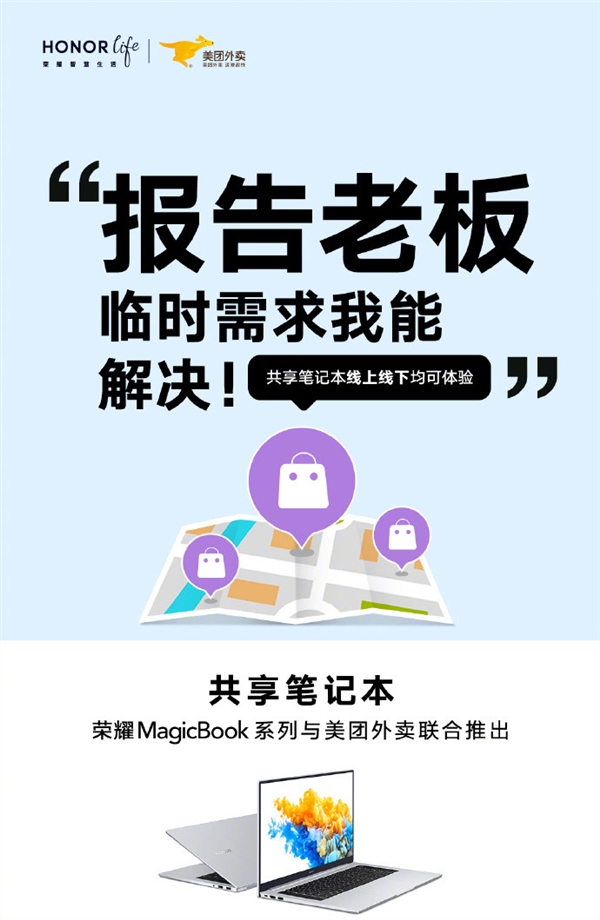 9月27日消息,荣耀智慧生活官方微博宣布,今年国庆期间,荣耀与美团合作推出 “共享笔记本”服务。