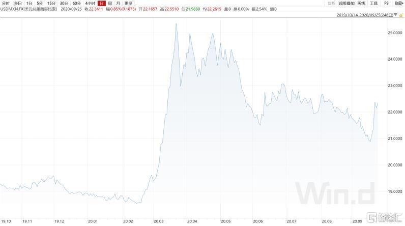 高盛指出:墨西哥比索仍然是我们对新兴市场货币的首选,尽管其升值空间已经较其他高利率新兴市场国家货币有限。即使在上周墨西哥比索遭到抛售以后,美元兑墨西哥比索的价格较疫情前接近19的水平仍有10%的下行空间。