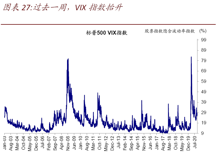 此外,近期欧洲公共卫生事件、增长和风险事件的增加被动推升了美元指数,9月以来持续走高。我们未观察到诸如3月份全球美元流动性收紧的迹象,但是一些对美元走势敏感的资产如大宗商品和部分新兴市场汇率与资金流向可能仍会受到阶段性压制,值得关注。